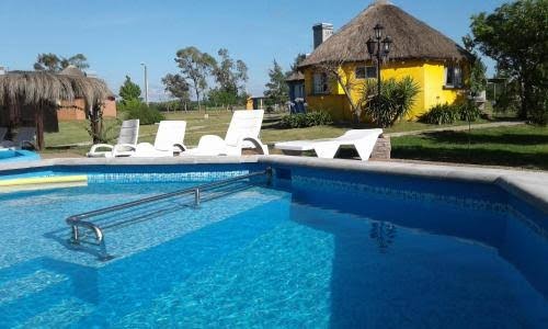 Lugar excepcional para descansar y disfrutar de un entorno rodeado de paz, naturaleza. Maravillosas las aves y su canto! La atención de Fanny y Marcela, así como las muchachas encargadas de la limpieza, todas un encanto de personas, atentas a cualquier necesidad para darle solución. Además es un lugar que acepta mascotas, y tratan muy bien a sus gatito y a la perrita que vive allí (la cual es muy amigable).Nosotros llevamos a nuestro perrito. Nos quedamos en un bungalow tipo monoambiente(hay otras opciones)equipado con una cama matrimonial (separada por un biombo alto de madera y un mueble que de un lado tiene estantes y del otro es roperito) y dos camas marineras que funcionan como sofá también.Es verdad que la cama matrimonial son dos camas individuales unidas, pero con la sabana con elástico se mantienen unidas y no vimos problemas ya que además son cómodas (nos quedamos 9dias allí). Cuentan con AA, estufa a leña, kitchenete básica con heladera y microondas, platos, vasos, cubiertos, tazas y bols de postre(no hay cocina, por tanto tampoco ollas, sartenes, etc).Proporcionan sábanas, toallas, toallas de piscina y batas con un costo adicional, había manta y acolchado adecuados a la temperatura invernal. Cada bungalow tiene parrillero y techo para estacionar el auto. La limpieza de la casa impecable, así como la de todo el predio y las piscinas(solo el fin de semana debido a la cantidad de personas, muchas con niños, notamos un poco de cambio en la calidad del agua de la piscina exterior). Las piscinas son de mención especial ya que estaban 3 de las 4 habilitadas, con agua caliente termal y que puede regularse la temperatura desde la administración. Están muy bien mantenidas y por su diseño tienen diferentes niveles para acostarse, sentarse y también una parte donde un adulto puede estar de pie con el agua cubriendo todo el cuerpo ( no tiene toboganes ni juegos para niños ya que las dimensiones no lo permite). Las disfrutamos de mañana, de tarde y de noche. En nuestra estadía llovió poco, pero como sucede en el campo, los días posteriores los caminos están húmedos y con barro, hay que tenerlo en cuenta para llevar zapatos y ropa de recambio. La localización de este complejo termal es ideal para descansar, queda a 400mts de ruta 3,a unas 10 cuadras del centro de termas del Daymán, o sea que aún sin auto se disfrutan. Hay un super a 2 cuadras que tiene de todo, y sobre ruta 3 a 7 u 8 cuadras la panadería Don Diego, excelente tanto en productos de panadería como en rotiseria, todos muy ricos y en cuenta (tienen de todo, es un supermercado pequeño) , cada día hay menú y siempre tartas, milanesas, ensaladas varias para comprar al peso. Enfrente cruzando, esta la carnicería Angus con buena calidad de productos. Y por ruta 3 esta tambien el speto corrido El Rancho(a 900 pesos el ticket, fuimos solo una vez) . Y hay otros lugares para comer, para nosotros el restaurante de La Posta del Dayman, sobre ruta 3 cerca de la estación de buses, es de los mejores. O sea hay opciones para todos los bolsillos.Nosotros llevamos fruta, y algunas cosas para los primeros días, y así abaratamos. En resumen, lugar muy recomendable, sin dudas volveremos!
